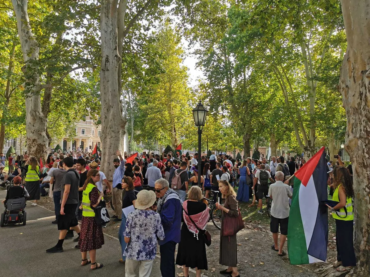 Собирот започна во 16:00 часот пред Домот на новинарите (Перковчева 2), по што поворката се упати кон Зрињевац и зградата на Министерството за надворешни работи на Република Хрватска, каде што заврши последниот пропалестински протест во Загреб.