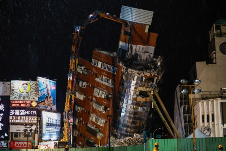 Поради последователни потреси по земјотресот во Тајван во средата, уривањето на опасно искривената 10-катна зграда е прекинато.