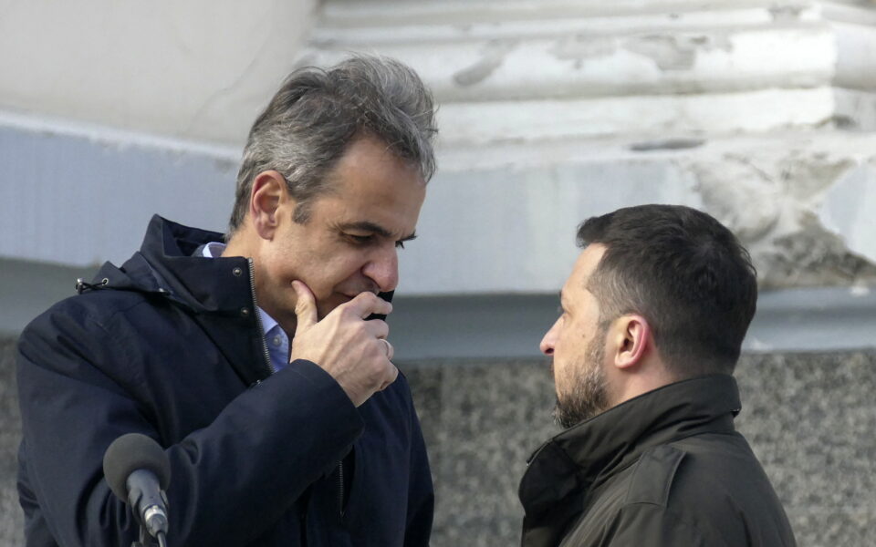 „Моето присуство овде ја одразува почитта на целиот слободен свет кон вашиот народ и ја нагласува посветеноста на Грција да остане покрај вас“, му рече Мицотакис на Зеленски за време на неговата прва посета на Украина по руската инвазија во февруари 2022 година.