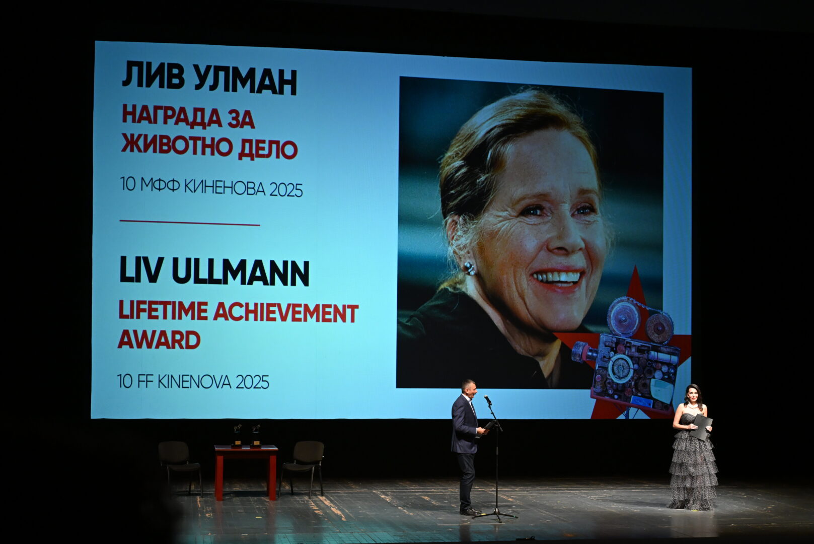 -Длабоко сум почестена што ја добивам оваа награда и сакам да ја изразам мојата искрена благодарност до фестивалот за признанието што го добивам за мојата работа. Да добијам вака високо признание  од уметниците и публиката во Македонија, земја со толку богато културно наследство, е длабоко значајно за мене. Иако сè уште немав можност да ја посетам вашата прекрасна земја, долго време посакував да го сторам тоа. Помислата дека моите филмови и мојата посветеност на човековите права стигнаа до луѓе толку далеку од местото каде што живеам и ги допреа длабоко, ме исполнува со радост и понизност. Знам дека Македонија има потентна заедница на филмски режисери, уметници и интелектуалци, а да се почувствува вашата поддршка и топлина е подарок. Се надевам дека еден ден наскоро ќе можам да дојдам во Македонија, да ве запознаам лично и да ја споделам страста за филмската уметност што нè обединува сите преку границите. Ви благодарам уште еднаш за оваа чест. Тоа го зајакнува моето верување дека приказните, без разлика дали се раскажани преку филм или преку нашите постапки како човечки суштества, можат да нè поврзат, да нè инспирираат и да нè зближат еден со друг, стои во пораката од Лив Улман која беше прочитана на свеченоста.