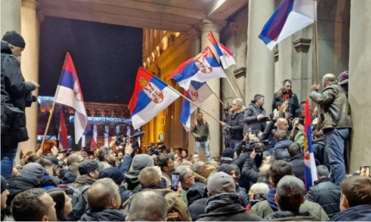 Одредени лидери на листата „Србија против насилството“ се обиделе насилно да влезат во градското собрание на Белград, за кое тврдат дека е „нивно бидејќи победиле на изборите во Белград“, пренесува Би-Би-Си на српски јазик.