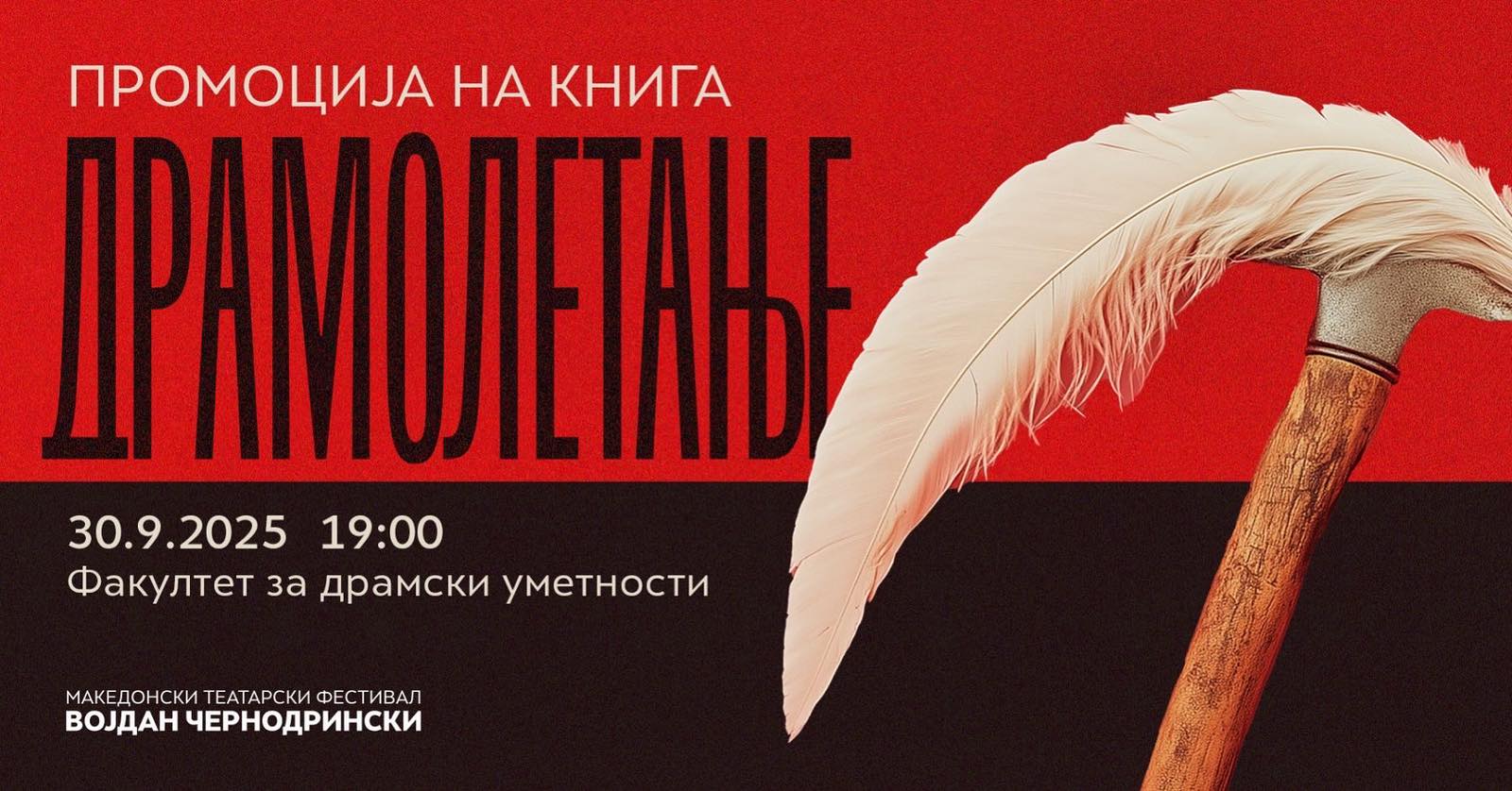 Книгата „Драмолетање“ во издание на Македонскиот театарски фестивал „Војдан Чернодрински“ од Прилеп ќе биде промовирана утревечер во 19 часот во Факултетот за драмски уметности во Скопје. Четири драми избрани од првиот повик и пичинг форум што се организираше во рамките на 59-то издание на фестивалот, се застапени во ова важно издание за македонската драматургија. Станува збор за