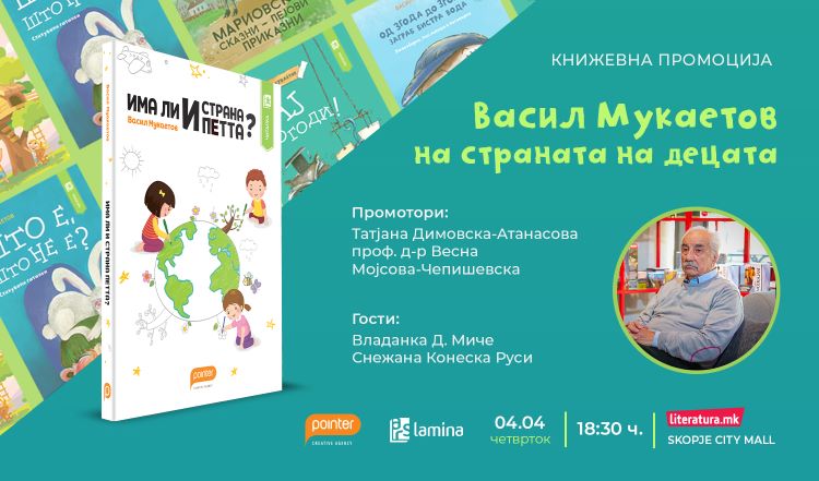 Новата книга „Има ли и страна петта?“ на еден од најплодните македонски писатели за деца, Васил Мукаетов, ќе биде промовирана на 4 април (четврток), во 18.30 часот, во „Литература.мк“ во „Скопје сити мол“. Промотори ќе бидат Татјана Димовска-Атанасова, уредничка во „Арс Ламина“ и проф. д-р Весна Мојсова-Чепишевска, професорка на Филолошкиот факултет „Блаже Конески“.