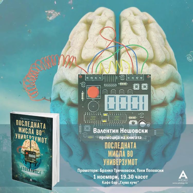 Вечерва (среда, 1 ноември) со почеток од 19.30 часот во среда, во 19:30 часот во барот „Глуво куче“ ќе биде промовирана книгата „Последната мисла во универзумот“ на авторот Валентин Нешовски.