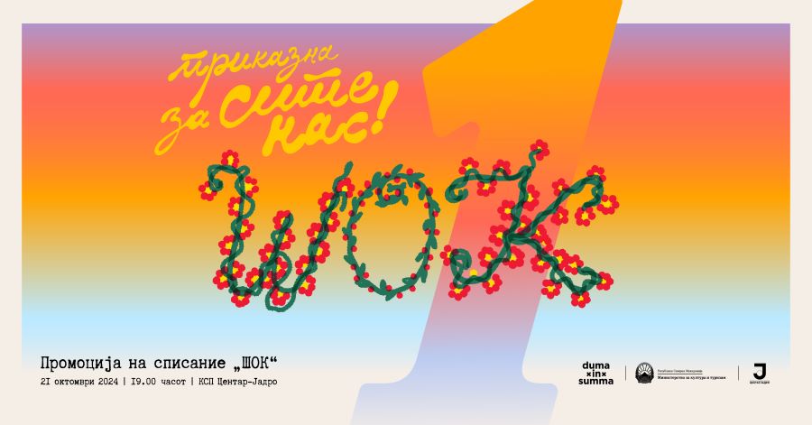 Во понеделник (21 октомври), со почеток во 19 часот во КСП Центар – Јадро ќе се одржи промоција на списанието за млади „ШОК“. Првиот број на списанието го означува и првиот роденден на „Дума ин Сума“, неформалното здружение за култура создадено од книжевничките Ивана Смилевска, Марија Бошковска и визуелниот уметник Дарко Алексовски.