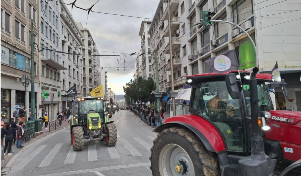 Протест на грчките земјоделци се одржа денес, 13 февруари 2026 година, во центарот на Атина, каде земјоделци и сточари од повеќе региони пристигнаа со десетици трактори на плоштадот Синтагма и се паркираа пред грчкиот парламент, барајќи мерки против растечките трошоци за производство и услови што, според нив, ја прават работата неисплатлива.