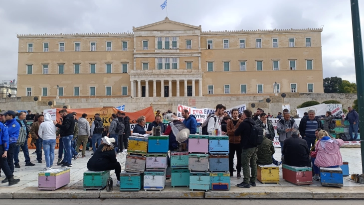 Со сандаци за чување пчели, со средства за производство на мед, со камиони и други возила, пчелари од цела Грција, денеска пристигнаа во Атина и одржаа протест пред грчкиот Парламент за да ги истакнат нивните барања, јави дописничката на МИА од Атина.
