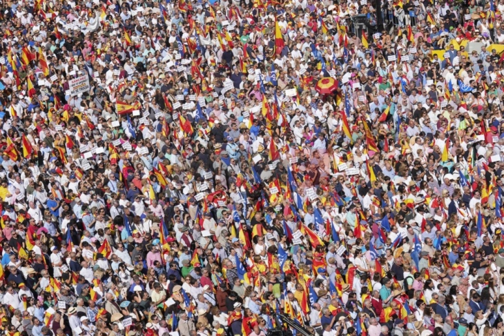 Десетици илјади Шпанци излегоа денеска на улиците на Мадрид за да протестираат против потенцијалниот план на вршителот на должноста премиер Педро Санчез да им даде амнестија на каталонските сепаратисти со цел да остане на функцијата по изборите на кои не победи.