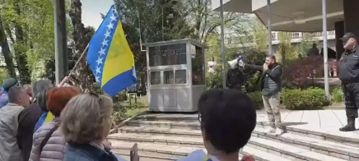 Сараевски медиуми јавија дека мала група граѓани стигнала до зградата на парламентот на Федерацијата Босна и Херцеговина.