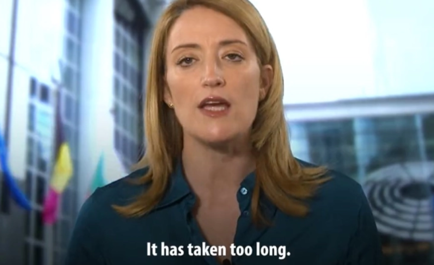 Претседателката на Европскиот парламент во видеото што го објави вели дека ЕУ е свесна дека слуша повици од земјите од Западен Балкан кои бараат побрз процес за приклучување кон блокот од 27 земји.