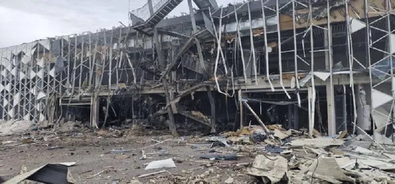 Украинскиот пратеник Муса Махомедов сподели фотографија од последиците на Телеграм, на која се гледа уништувањето на аеродромот во рускиот напад.