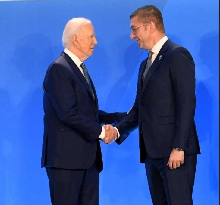 Мицотакис, на прес-конференција за грчки медиуми на Самитот на НАТО во Вашингтон, кажал дека премиерот Мицкоски на официјалните состаноци на сите лидери на НАТО го користел уставното име на државата. Мицотакис, сепак, ги информирал колегите во НАТО оти не се спроведува клучниот член од Договорот од Преспа, а тоа е името Северна Македонија да се употребува ерга омнес, што значи внатре и надвор од државата.