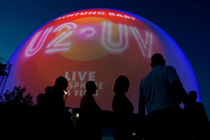 Сфера, новоотворениот футуристички сценски објект на Стрип, главната променада во Лас Вегас, беше отворена во септември. Фотографиите на интернет од овој објект се малку за да се дофатат светлосните и визуелни ефекти на екраните поставени во 360 степени во кругот. Сферата започна со работа со концертите на славните Ирци U2. Легендарните музичари предводени од Боно и Ди Еџ, цела есен и зима во рамките на турнејата „Ахтунг бејби“ организираа триесетина концерти во Сфера. Беа предвидени 25 но по барање на посетителите концерти ќе има до почетокот на март 2024. Со ова U2 станаа едни од најуспешните „резиденти“ во Лас Вегас.