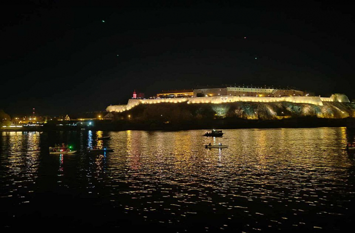 Студентите и граѓаните се собраа на кејот во Нови Сад околу 18:30 часот и одржаа шеснаесетминутен молк во знак на почит кон жртвите од уривањето на покривот. Потоа студентите со чамци се упатија кон средината на Дунав, од каде што пуштија фенери во воздух.