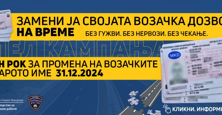 Министерството за внатрешни работи ги потсетува граѓаните дека важноста на возачките дозволи со старото уставно име, согласно со промената на законот за безбедност во сообраќајот, е заклучно со 31.12.2024 година.