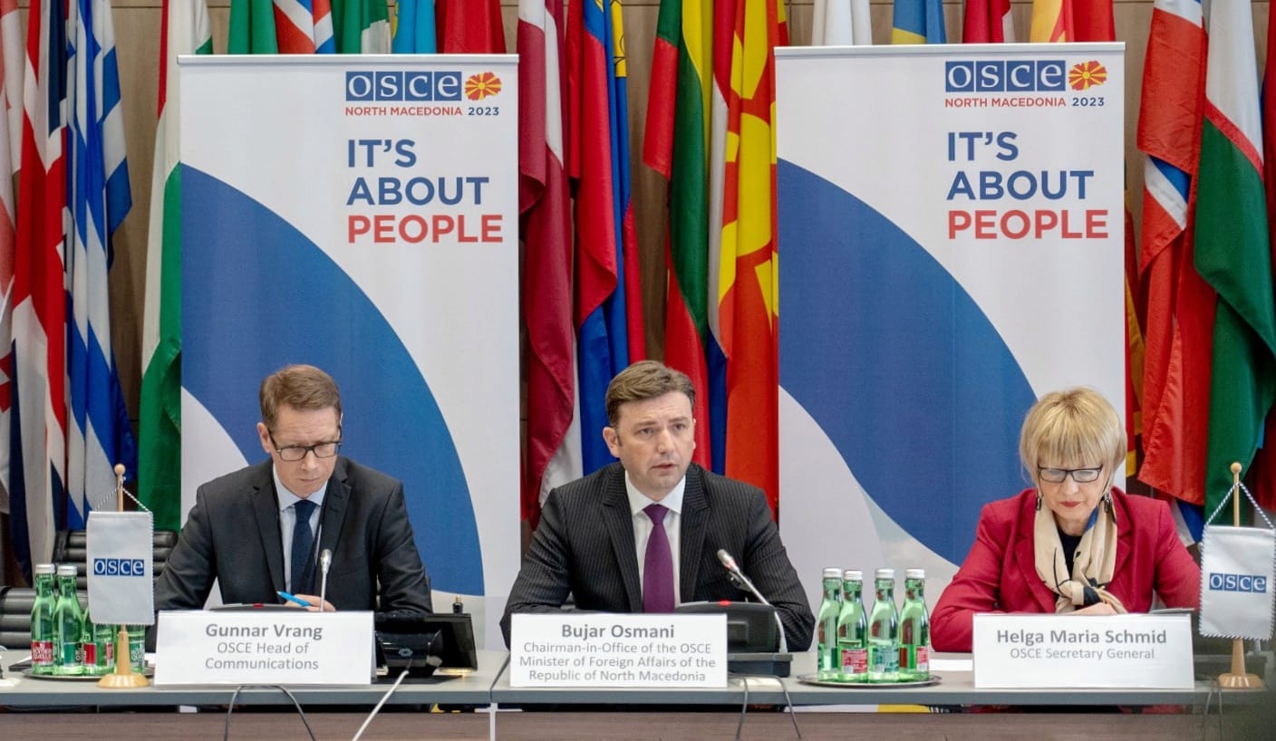 Северна Македонија, нашите тимови во Скопје и во Виена ќе бидат целосно посветени на мисијата. Со искрена посветеност и чувство на одговорност почестени сме и горди што ќе бидеме на кормилото на ОБСЕ во 2023 и што ќе бидеме чувари на нашите вредности и обврски. Вредностите на ОБСЕ денеска се поважни од кога и да било. Наша прва мисија и цел е да повикаме на итен прекин на агресијата, запирање на страдањето на луѓето на терен, повлекување на сите трупи и повторно обврзување на принципите и вредносните на оваа организација, порача вчера во Виена шефот на дипломатијата Бујар Османи во улога на претседавач на ОБСЕ на заедничката прес-конференција со генералната секретарка на организацијата Хелга Марија Шмид.