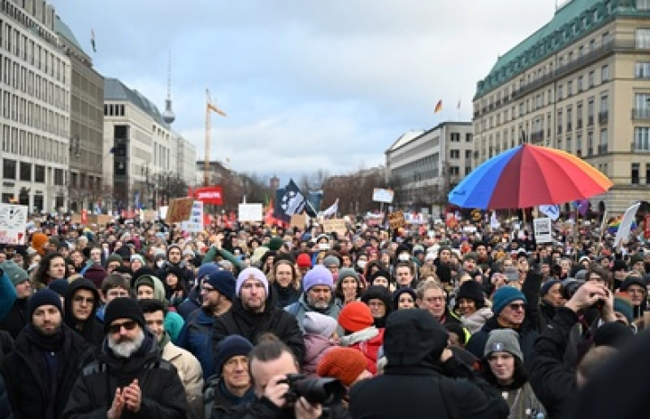 Илјадници луѓе – меѓу кои и германскиот канцелар Олаф Шолц и министерката за надворешни работи Аналена Баербок – излегоа денеска на улиците на Потсдам, предградие на Берлин, за да протестираат против екстремизмот на десницата во земјата.