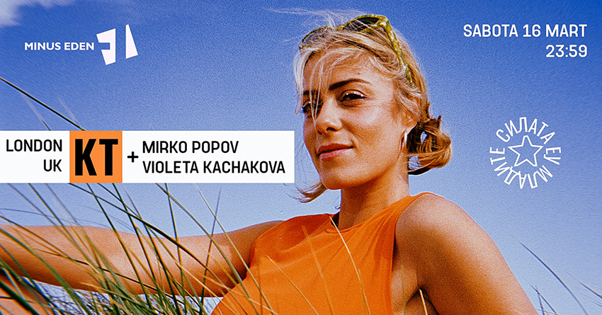 Оваа сабота, на 16 март, точно на полноќ, во ноќниот клуб Минус Еден, во рамки на платформата СИЛАТА ЕУ МЛАДИТЕ, пред скопските љубители на електронската музика ќе настапи со диџеј сет КТ од Лондон, Велика Британија.
