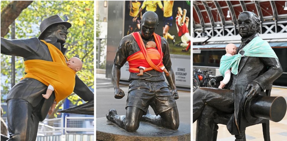 Активистите од новата кампања, Dad Shift, врзуваа бебиња-кукли за статуите на инженерот Исамбард Кингд Брунел, актерите Лоренс Оливие и Џин Кели и фудбалерите Тиери Анри и Тони Адамс, во обид да го фокусираат вниманието на важноста на таткото во растењето на бебето.