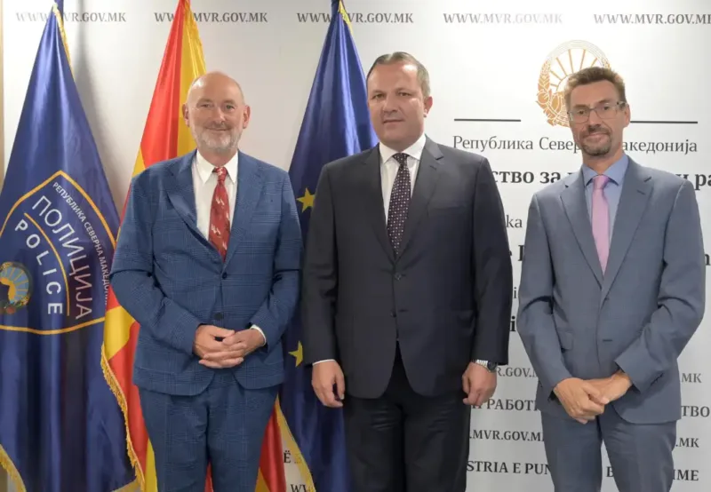 Министерот за внатрешни работи Оливер Спасовски и државната секретарка Магдалена Несторовска, денеска оствариле работна средба со амбасадорот на Делегацијата на Европската Унија во Република Северна Македонија, Дејвид Гир, како и новиот заменик шеф на Делегацијата на ЕУ во земјава, Бен Нупнау.