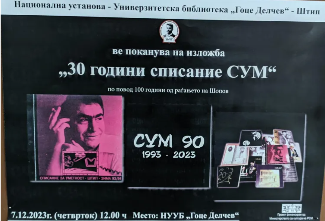 Познатото штипско списание за уметност СУМ прослави 30 години од своето постоење. Еден од најважните медиуми за уметност кој излегол од Штип.
