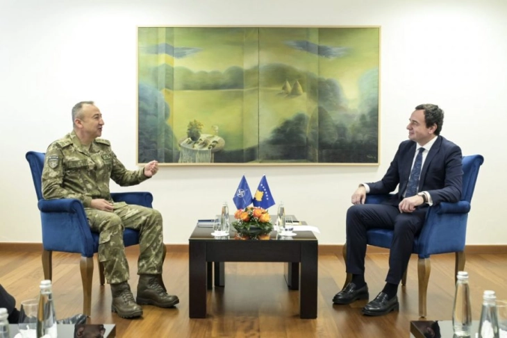 Косовскиот премиер Албин Курти го прими денеска новоименуваниот командант на Мировната мисија на НАТО во Косово, КФОР, генерал Озкан Улуташ, со кого разговарал за безбедносната состојба во земјата по нападот на 24 септември во Бањска на северот на Косово, јави дописникот на МИА од Приштина.
