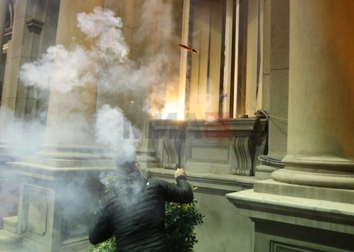 Граѓаните фрлаа камења кон зградата на Градското собрание во Белград, а полицијата ги испрска со поголема количина солзавец.
