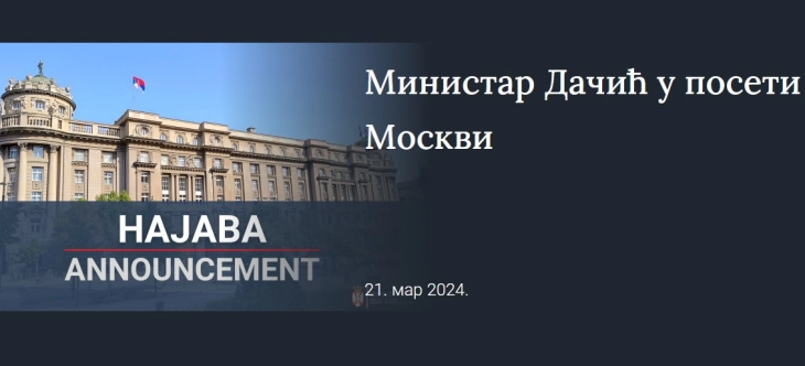 На покана на Лавров, Дачиќ утре ќе престојува во Москва каде ќе присуствува на пријателскиот натпревар меѓу фудбалските селекции на Србија и Русија, соопшти Министерството за надворешни работи на Србија.