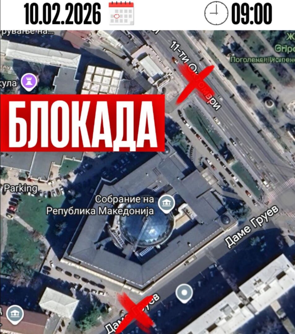 ССМ повика на блокада пред Собранието на 10 февруари 2026 (вторник) од 9 часот, на улиците „11-ти Октомври“ и „Даме Груев“, со барање минималната плата веднаш да се зголеми на 600 евра и да следи раст и на сите други плати, додека во исто време УПОЗ, според најавите во јавноста, постигнал договор со Владата за зголемување на платите за 40 проценти, што отвора нова линија на притисок и споредба меѓу синдикалните стратегии.
