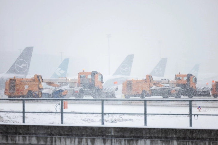 Стотици летови на аеродромот во Франкфурт во Германија се откажани денеска, еден ден откако поради зимска бура накратко беа прекинати полетувањата и слетувањата.