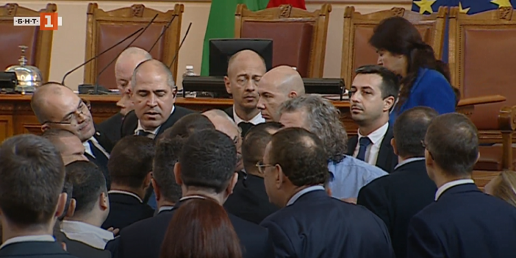 На денешната седница во бугарското Народното собрание дојде до тепачка помеѓу пратениците по декларација на партијата „Преродба“ (Вазраждане), која повторно повика партијата „Продолжуваме со промените“ да го напушти парламентот бидејќи, според нив, дозволиле државата ја преземат странските амбасади.