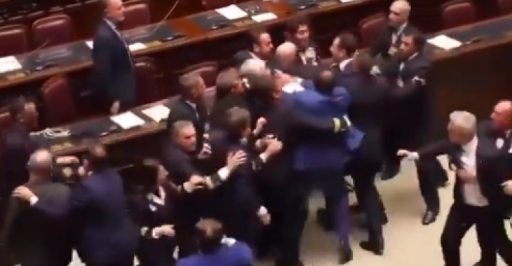 Опозициски пратеник мораше да биде изнесен со количка од италијанскиот Парламент синоќа по расправија и тепачка за време на дебатата за поголема регионална автономија. Леонардо Доно од популистичкото Движење пет ѕвезди бил турнат и соборен на подот од други пратеници во хаотични сцени во Долниот дом на парламентот, објавија италијанските медиуми.