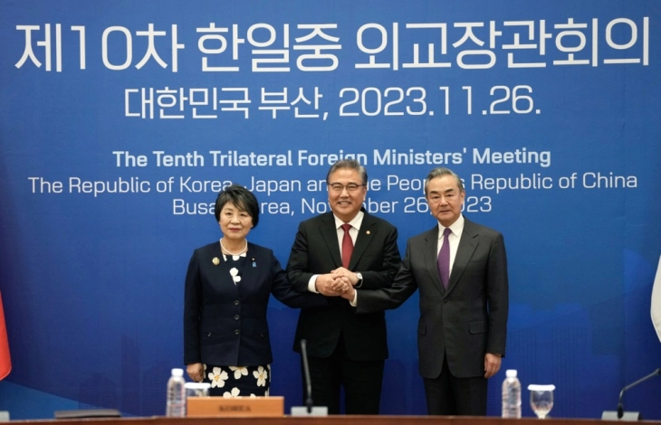 – Министрите за надворешни работи на Јужна Кореја, Кина и Јапонија денеска се сретнаа во јужнокорејскиот пристаништен град Бусан со цел да ја обноват соработката меѓу соседните земји и да подготват трилатерален Самит.