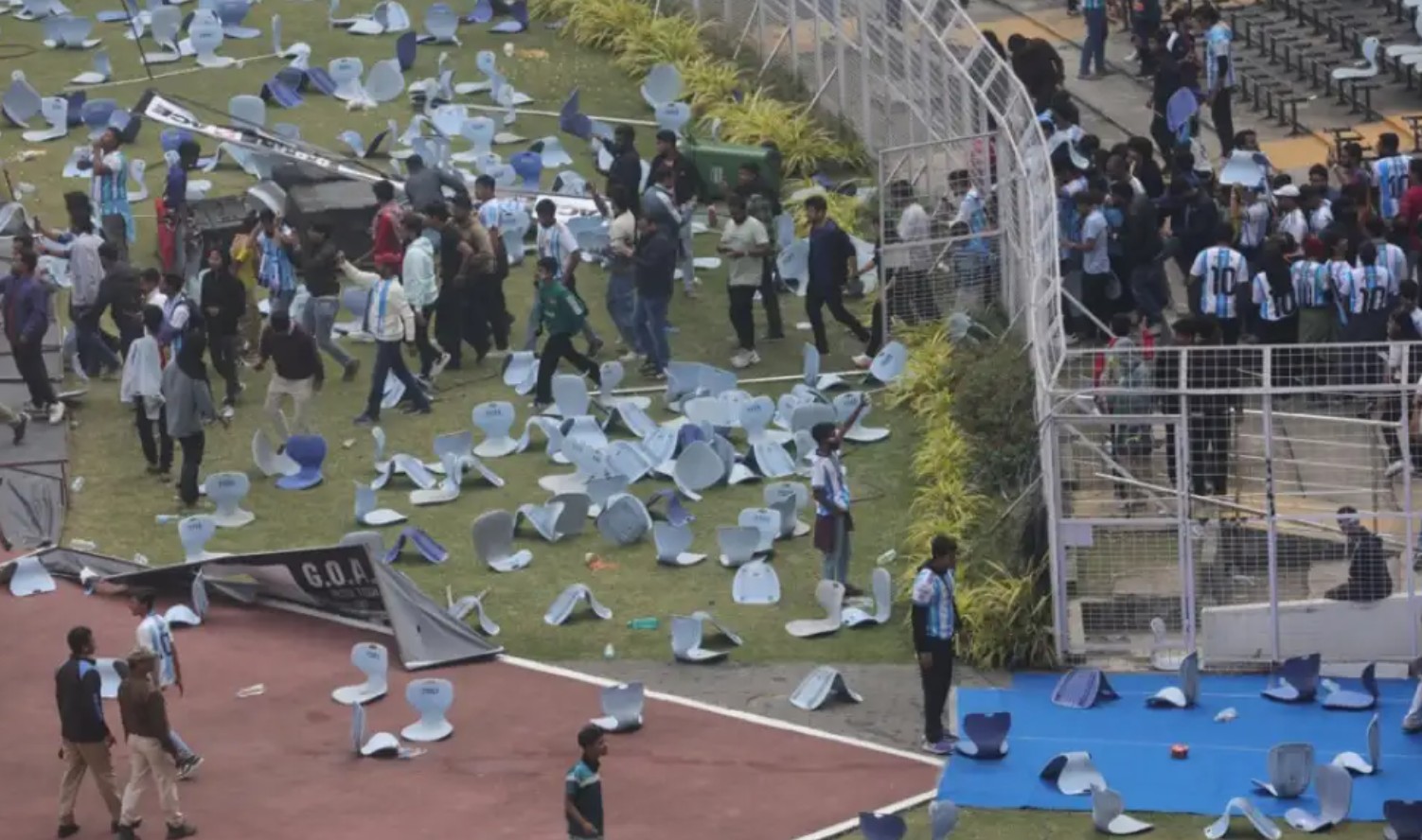 Турнејата на Лионел Меси низ Индија, најавувана како голем спортски и шоу-бизнес настан, започна во хаотична атмосфера на стадионот „Солт Лејк“ во Калкута. Дел од навивачите ја искажаа својата лутина со кршење и фрлање седишта на теренот, поради тоа што, според нив, биле излажани за тоа што ќе го видат и доживеат од аргентинската ѕвезда и член на Интер Мајами.