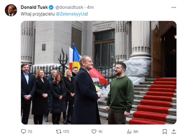 Туск се врати на чело на полската влада во декември, по изборите во октомври со кои беше соборена десничарската националистичка партија Право и Правда (ПиС) по осум години на власт. Тој вети дека ќе ја продолжи тековната поддршка на Полска за нејзиниот источен сосед по руската инвазија во февруари 2022 година.