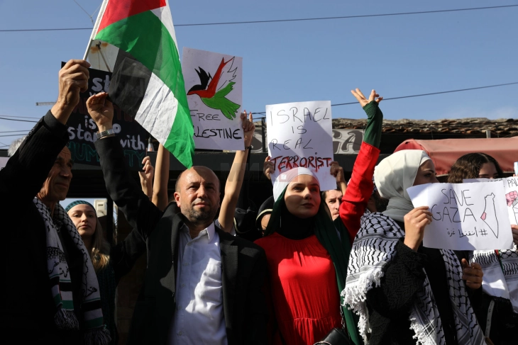 Учесниците повикаа на слобода за Палестина, веејќи палестински знамиња и извикуваа: „Стоп за убиствата, запрете ја војната, запрете го геноцидот во Газа“.