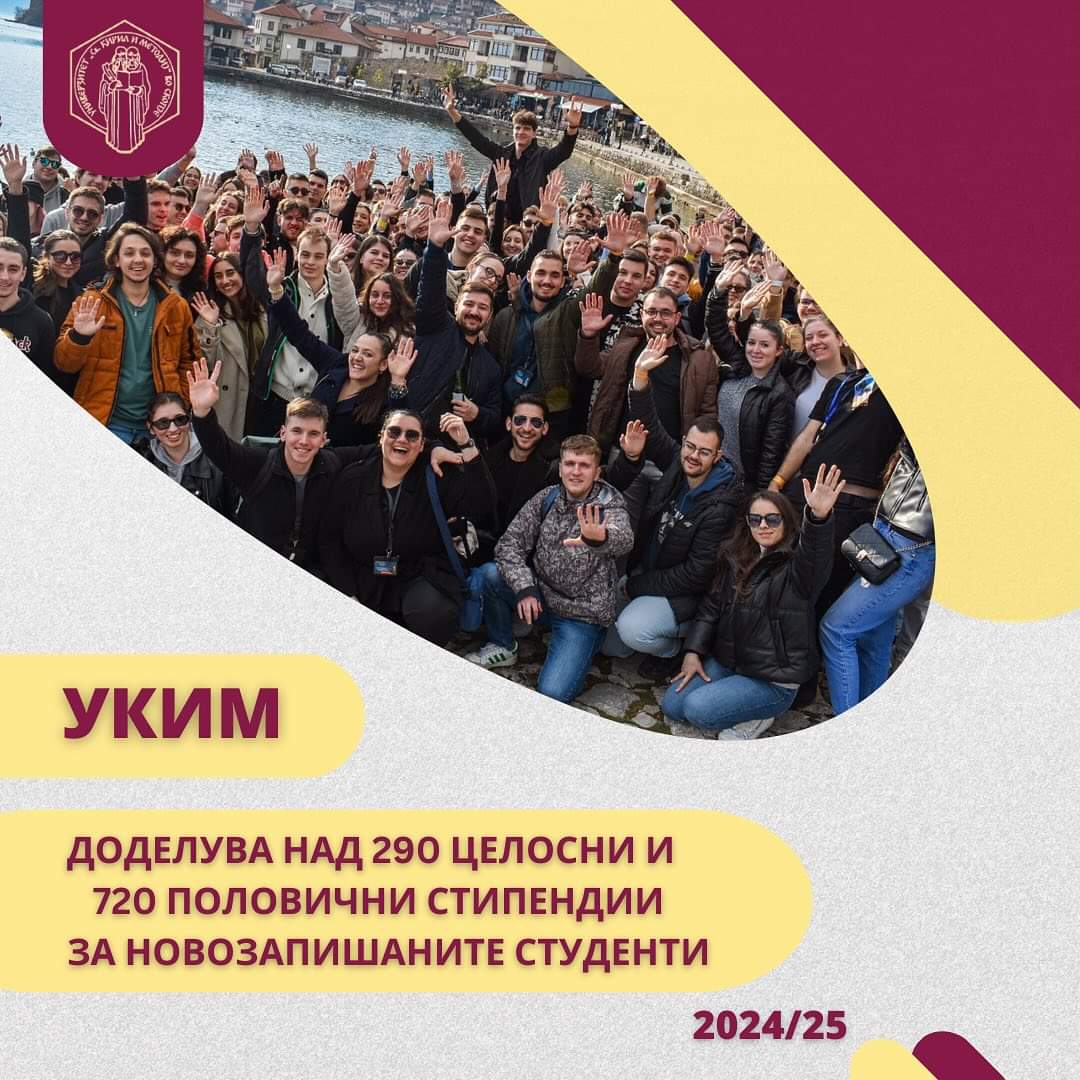 Универзитетот „Св. Кирил и Методиј“ во Скопје, со цел унапредување на образованието на младите во земјава и отворање на нови можности за нив, обезбеди над 290 стипендии за сите Факултети за новите студенти на прв циклус студии, како и 720 половични стипендии за студенти од секоја студиска програма и од секоја студиска година, за кои родителското право го врши само еден родител.