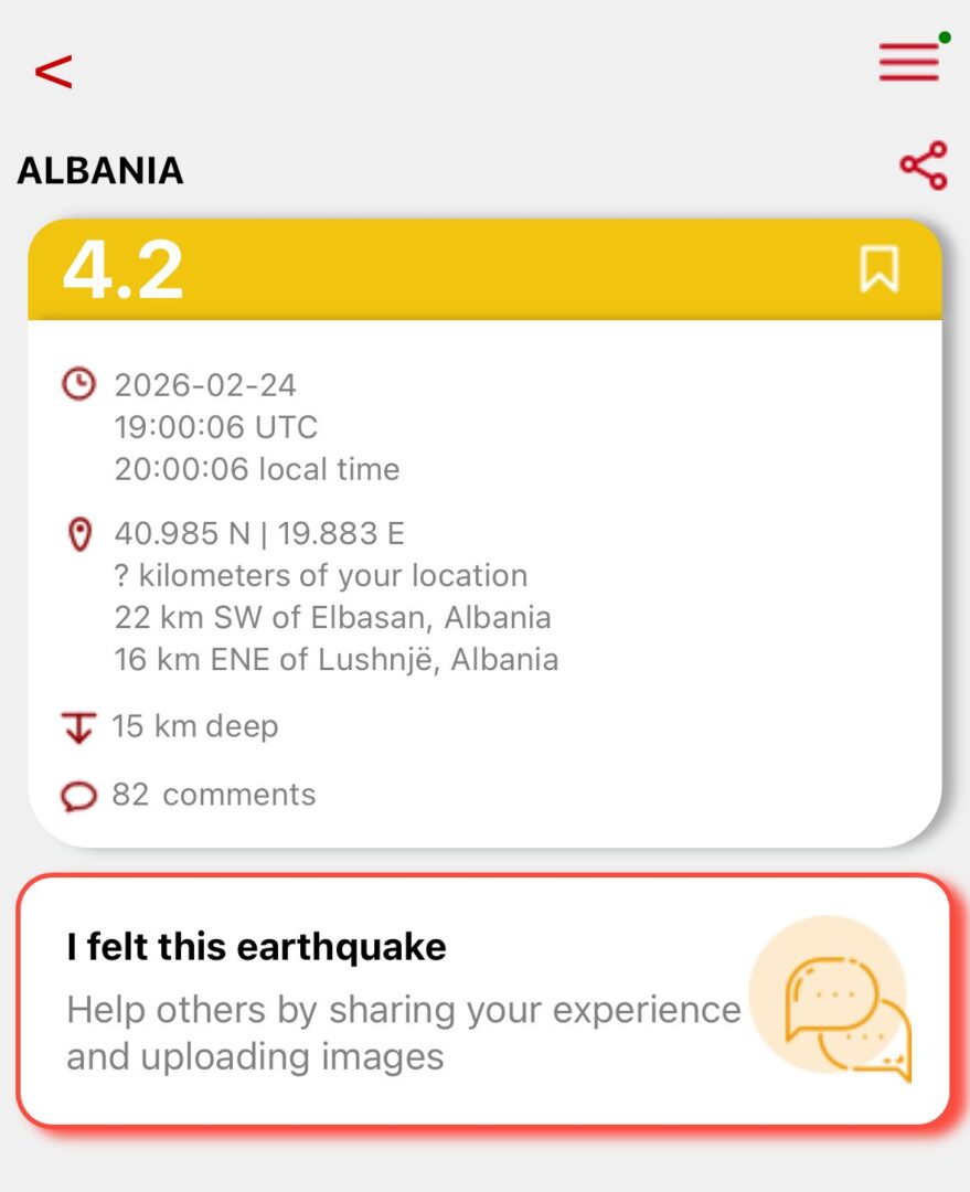 Според објавените извештаи, земјотресот е регистриран во 20:06 часот, на длабочина од 13 километри. Во истите податоци се наведува дека епицентарот бил на 7 километри северозападно од Лушња и 31 километар југозападно од Елбасан.