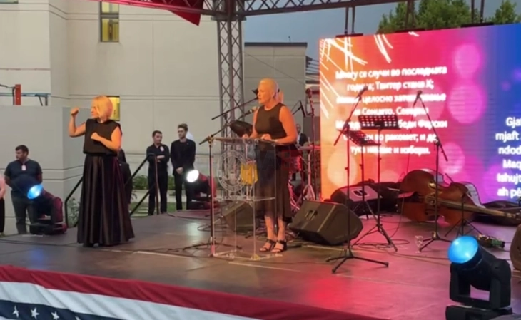 – Мора да знаете колку е опасно да го претрпите дури и најмалото ускратување. И денеска нејзините зборови имаат поголемо значење од кога и да е. Секаде околу нас гледаме свет кој се менува. Повеќе гласачи од кога било во историјата имаат право да гласаат во 2024 година во над 90 земји и во ЕУ, дури и во време кога војни и конфликти погодуваат милиони низ целиот свет. Сега се потсетив дека најсилните демократии не успеваат сами. Кога сме обединети сме посилни. САД се посилни и поблагородни затоа што имаме сојузници, пријатели и партнери како Северна Македонија, рече Агелер во обраќањето пред присутните на церемонијата.