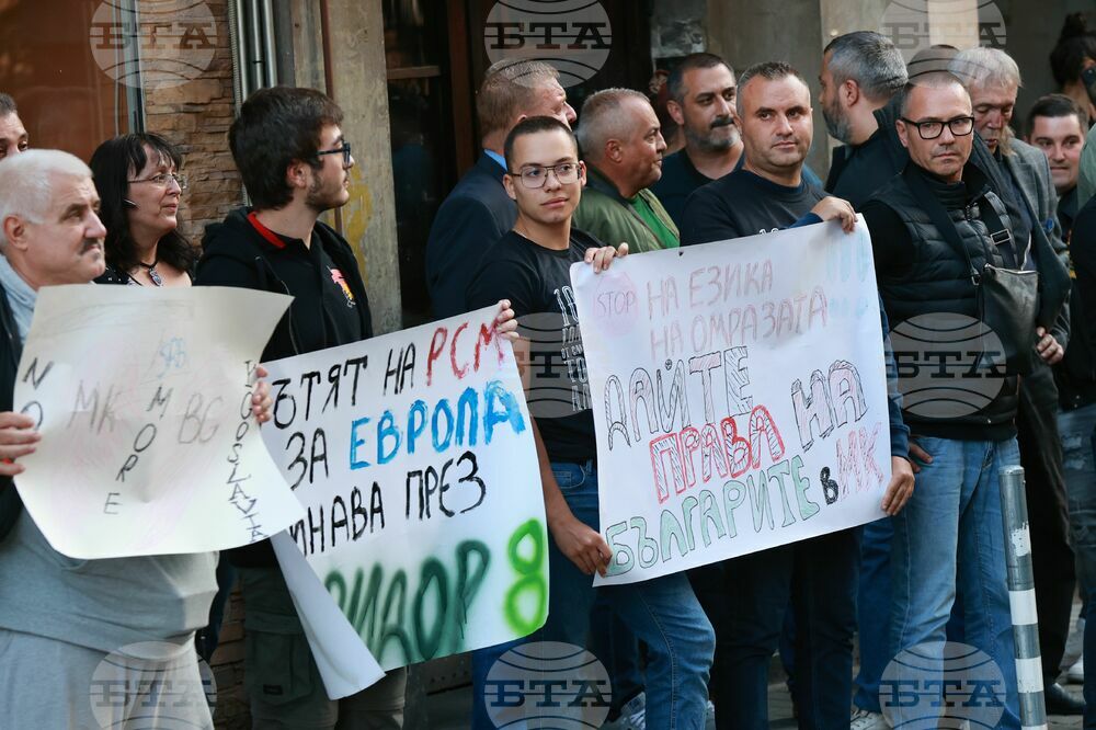 Припадници на бугарската ВМРО се собраа пред Националната опера во Софија и ја пречекаа со викање, довикување и разни пароли како „Патот на РСМ кон Европа минува низ коридорот број 8“, „Не за јазикот на омразата“, „Дајте им права на Бугарите во Македонија“ и други. Надвор ја пречека и бугарскиот премиер Најден Димитров на кого му изрази сочувство за несреќата во која загинаа двајца пилоти.