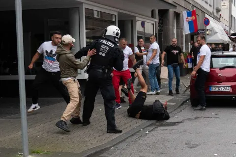 Во пресрет на вечерашниот натпревар од групата Ц меѓу Србија и Англија, во центарот на Гелзенкирхен дојде до судир меѓу навивачите на двете репрезентации.