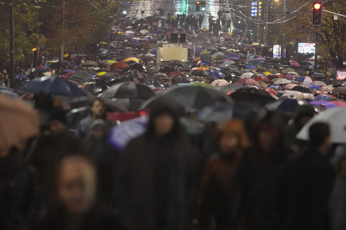 Протестите во Белград пред Владата и претседателството на Србија се одржаа поради уривање на настрешницата на зградата на Железничката станица во Нови Сад, во кое загинаа 14 лица, а тројца беа тешко повредени, јави дописникот на МИА од Белград.