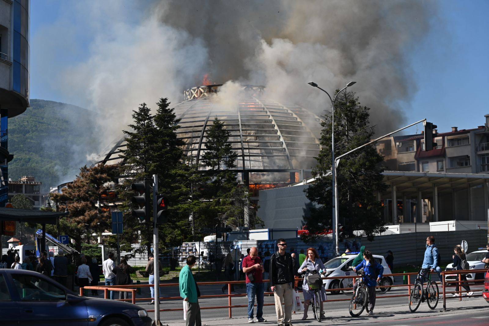 Универзалната сала ја зафатија огромни пламени јазици и предизвикаа густ гад во центарот на Скопје.