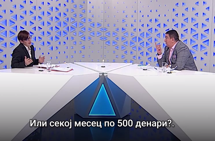На интервенцијата на новинарот дали може да се случи тие 5000 денари да се исплатат секој месец по 500 денари, 10 месеци по 500 денари, Димитриеска Кочоска вели „може и така, но тоа ќе биде зголемување, а не едно мерка“.