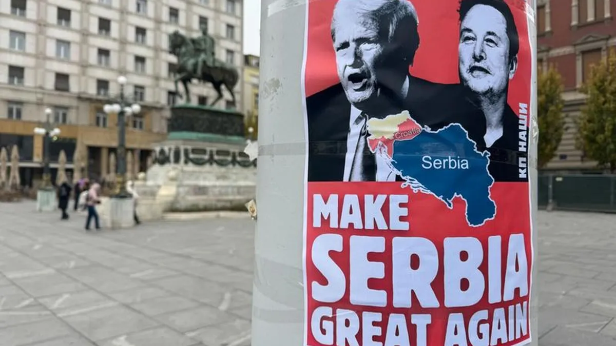 Постерите ги прикажуваат Доналд Трамп и Илон Маск со слоганот, кој ја копира предизборната порака на новоизбраниот американски претседател „Направете ја Америка повторно голема“: Да ја направиме Србија повторно голема. Постерите се дело на екстремно десничарското движење „Наши“. Според нив, во картата се вклучени и „историските српски земји“.