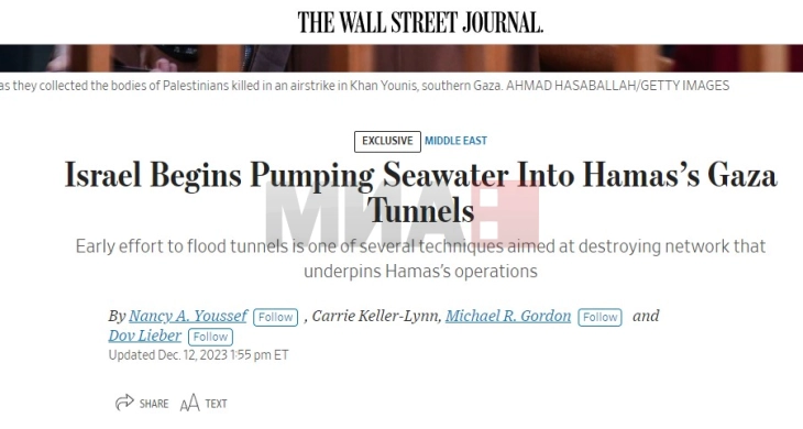 Израелските одбранбени сили (ИДФ) почнаа да го полнат со морска вода комплексот тунели на Хамас во Газа, јави Волстрит Џурнал цитирајќи неименувани американски официјални претставници.