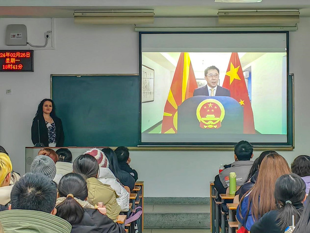 На 26 февруари, кинескиот амбасадор во Северна Македонија Џанг Зуо и амбасадорот на Северна Македонија во Кина Сашко Насев одржаа видео говори на свеченото отворање на новоотворениот изборен предмет по македонски јазик и култура во училиштето.
